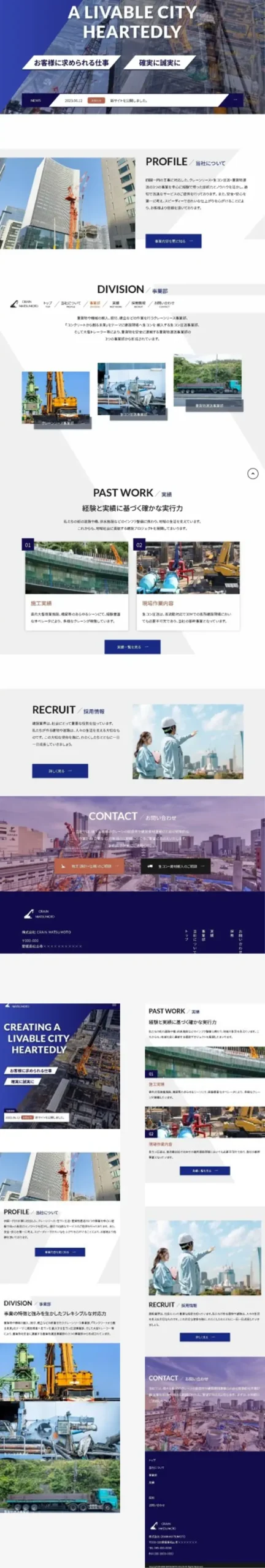 CRAIN MATSUMOTO #7 website 担当 Coding 説明 架空のクレーンリース、運送会社のサイトです。ファーストビューは台形による切り取り画面と、cssアニメーションによるゆっくりとした画面の切り替わりを設定しました。ヘッダーは、ファーストビューと一体型でjQuery利用で、スムーススクロールします。ファーストビューと連携し、下部の背景も斜め線で色分けとなっています。 デザインツール Photoshop レスポンシブ 対応 制作時間 30時間 サイトへ WORKS一覧へ